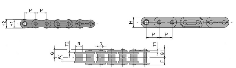 Upozornění: Tyto rozměry odpovídají ISO a mohou se u vysoce výkonných řetězů FB nepatrně lišit. Podrobné informace vám poskytnou specialisté na řetězy ve firmě FB.