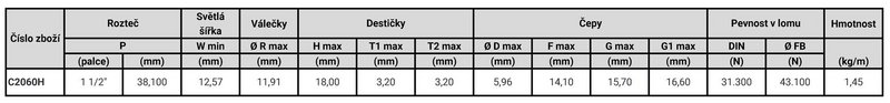 Válečkové řetězy s dlouhými články C2060H, vyráběné podle ISO 1275, mají rozteč 38,10 mm (1 1/2").