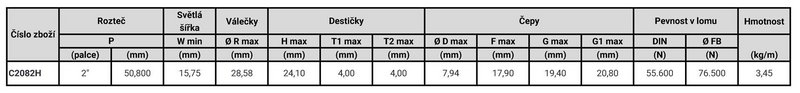 Válečkové řetězy s dlouhými články C2082H, vyráběné podle ISO 1275, mají rozteč 50,80 mm (2").