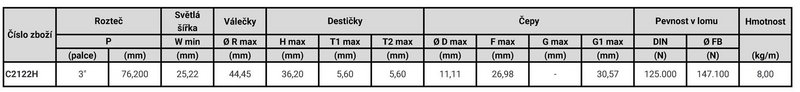 Válečkové řetězy s dlouhými články C2122H, vyráběné podle ISO 1275, mají rozteč 76,20 mm (3").