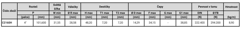 Válečkové řetězy s dlouhými články C2160H, vyráběné podle ISO 1275, mají rozteč 101,60 mm (4").