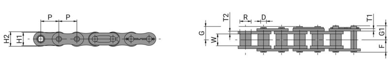 Upozornění: Tyto rozměry odpovídají ISO a mohou se u vysoce výkonných řetězů FB nepatrně lišit. Podrobné informace vám podají specialisté na řetězy ve firmě FB.