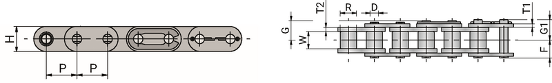 Jednoduché, vysoce výkonné válečkové řetězy 60-1HFGL mají rozteč 19,05 mm (3/4").